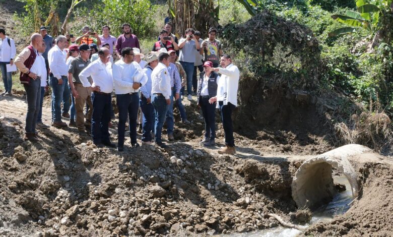 FRANCISCO Z. MENA, Pue.— El gobernador Alejandro Armenta, acompañado por integrantes de su gabinete, recorrió las comunidades de La Ceiba y La Máquina, en la Sierra Norte, para supervisar los trabajos de rehabilitación de caminos, puentes y viviendas afectados por las intensas lluvias.