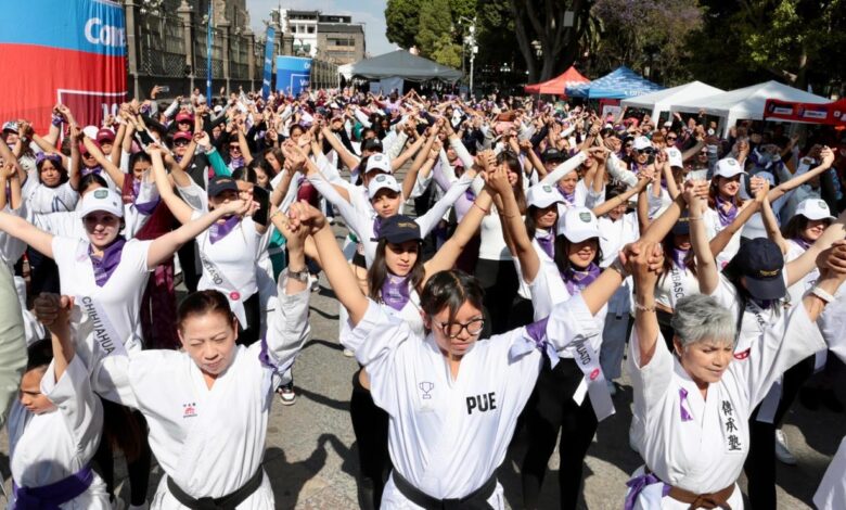 Como parte de una iniciativa que fortalece la seguridad, la confianza y la organización comunitaria de las participantes, cientos de poblanas participaron en una clase masiva de karate do, enfocada en la defensa personal, organizada por el Gobierno del Estado en el marco del Día Internacional de la Mujer.