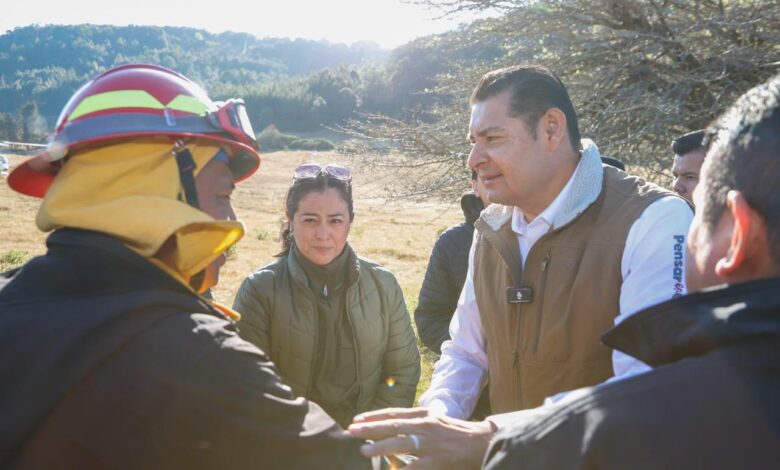 Durante las primeras horas de este miércoles, el gobernador de Puebla Alejandro Armenta supervisó directamente las acciones de combate y control del incendio forestal en la Sierra Negra, al sur del estado.