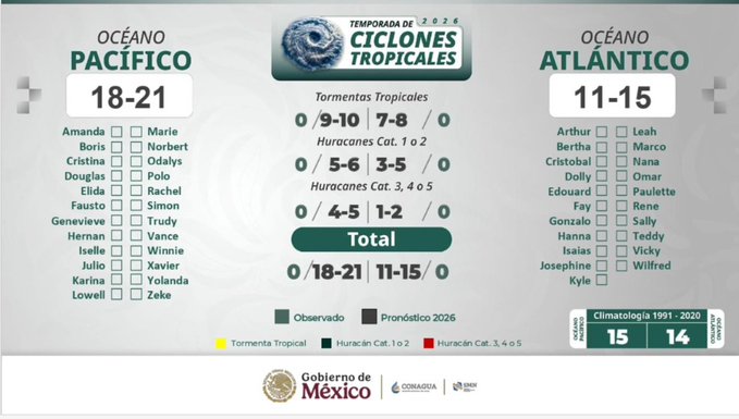 Para la temporada de ciclones 2026, el pronóstico indica mayor actividad en el océano Pacífico: