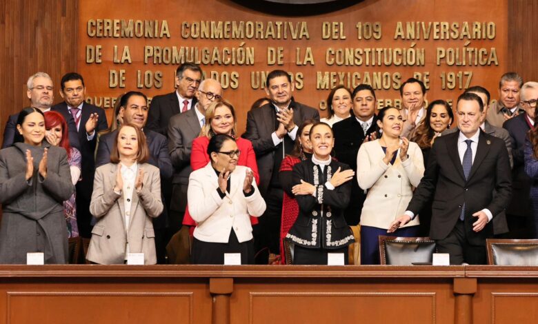 En la ceremonia por el 109 aniversario de la Promulgación de la Constitución de 1917, la presidenta de México, Claudia Sheinbaum, afirmó que la historia nacional es la de un pueblo que lucha por la dignidad, soberanía, libertad, democracia y justicia social. Recordó que la Constitución nació de insurgencias populares y no de acuerdos entre élites, y destacó que la transformación actual rescata los derechos del pueblo, fortalece el carácter social del Estado y deja claro que la soberanía no se negocia, se defiende.